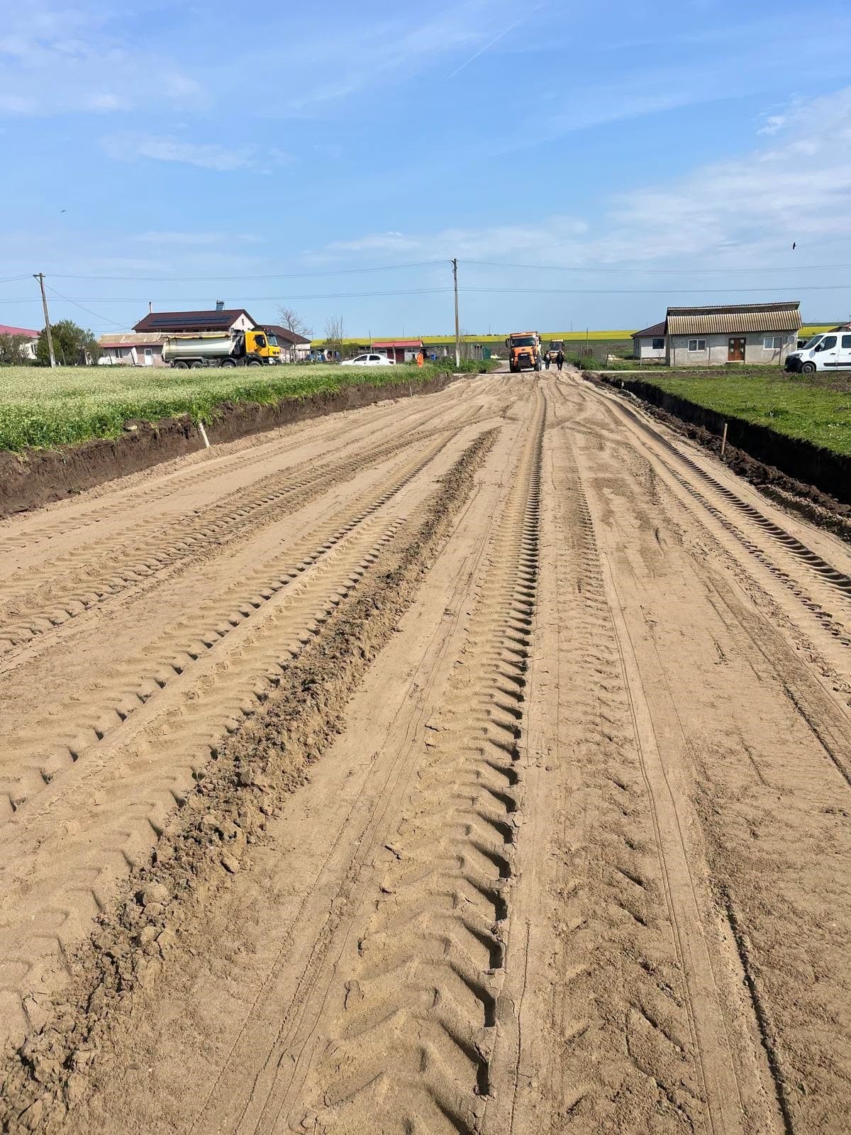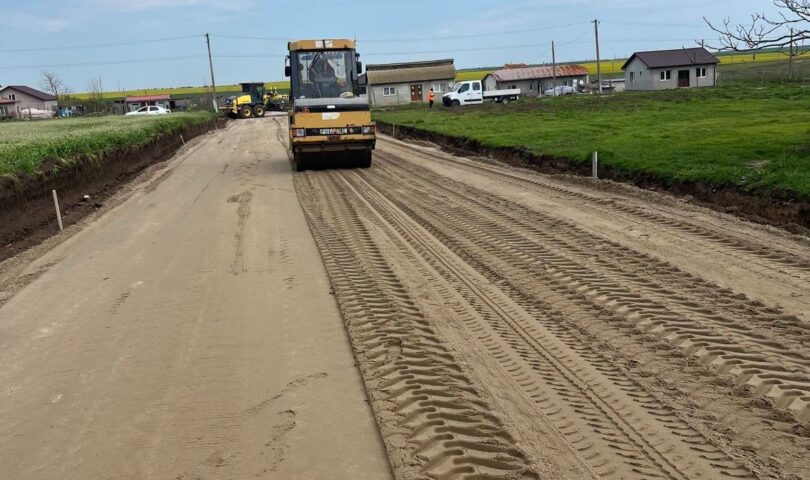După etapele inițiale, care au inclus realizarea terasamentelor, a straturilor de fundație și pregătirea structurii rutiere, lucrările au continuat în acest an cu intervenții esențiale pentru consolidarea drumului.