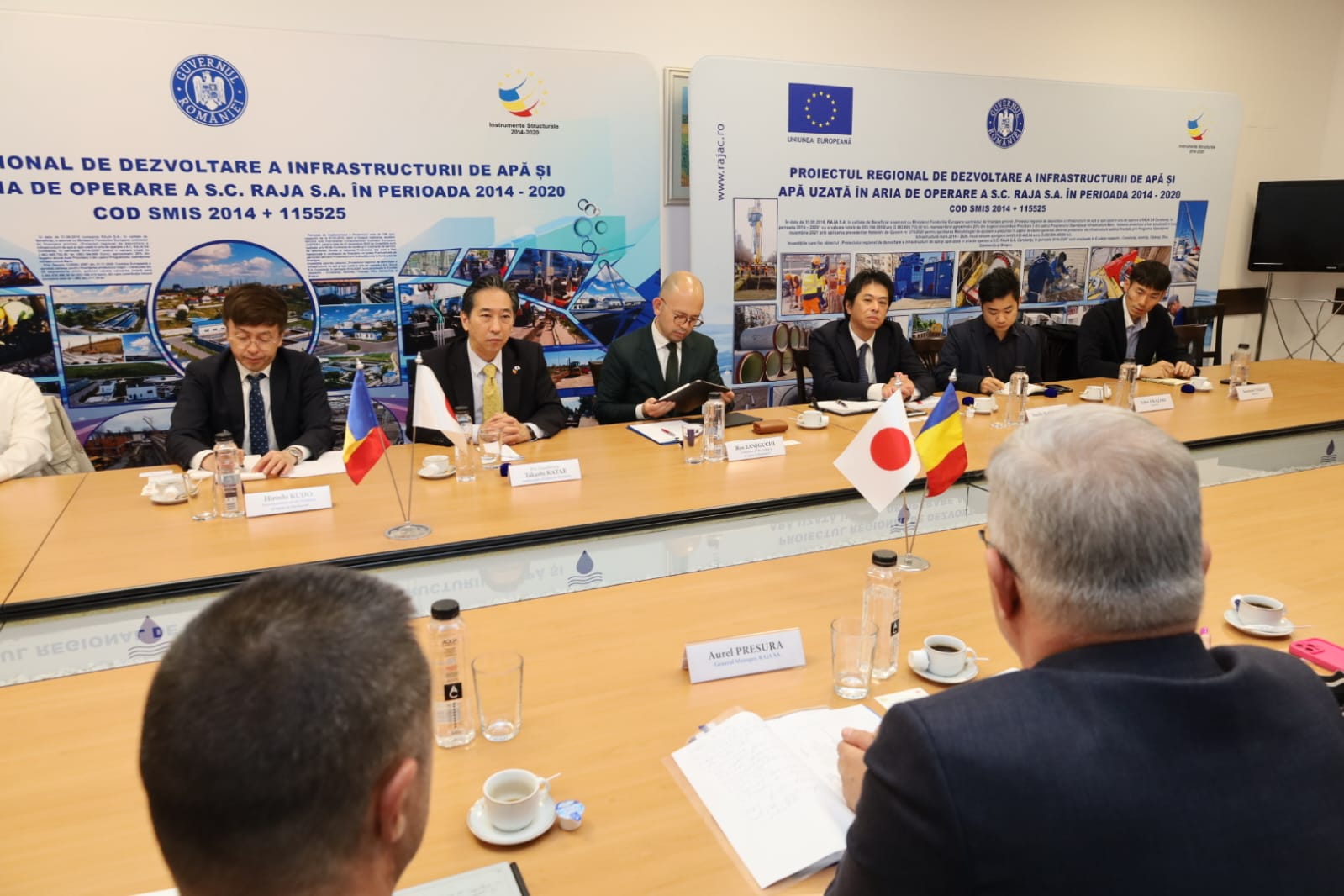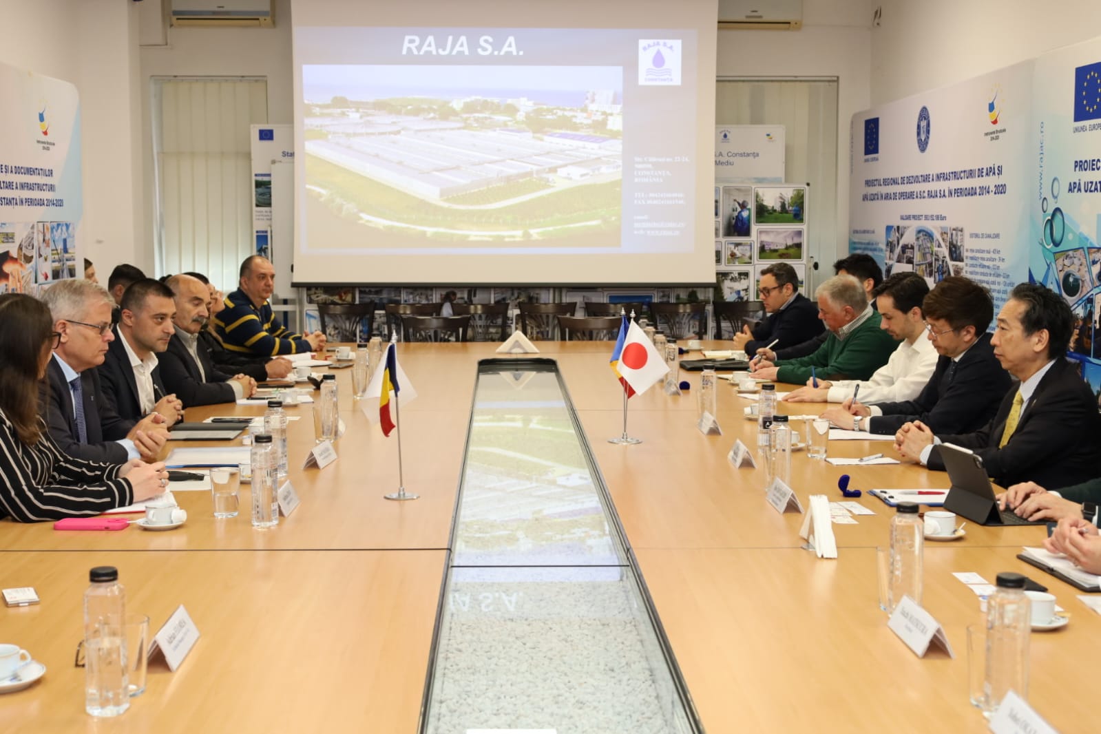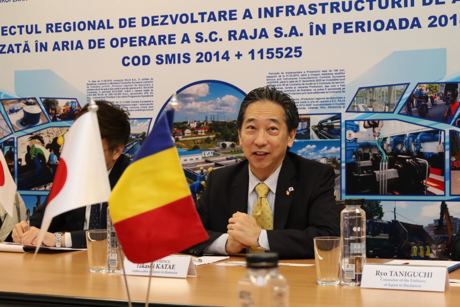 În cadrul discuțiilor, E.S. Ambasadorul Japoniei în România – dl. Takashi Katae a subliniat potențialul colaborării în domeniul gestionării apei și canalizării, esențial la nivel global: “Sunt onorat de această vizită, mai ales că este prima vizită în Constanța și în zona Dobrogei. În contextul actual, în care Japonia a devenit partener strategic pentru România, principala mea misiune este să susțin dezvoltarea relațiilor economice, iar parteneriatul dintre RAJA și una dintre cele mai puternice firme japoneze se înscrie în această linie. Respect faptul că RAJA gestionează unul dintre cele mai dificile și sensibile sisteme, problema apei fiind esențială la nivel global. De aceea dezvoltarea durabilă a infrastructurii de apă și canalizare este primordială și nu se poate realiza decât printr-o colaborare strânsă între diferite entități și țări, astfel încât să se poată împărtăși cunoștințele, experiența și resursele necesare pentru implementarea celor mai eficiente soluții”.